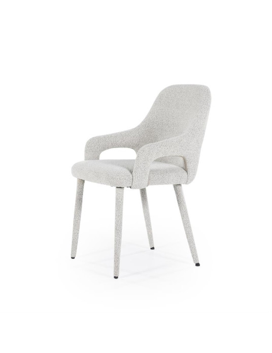 Pilkos spalvos milteliniu būdu dažytos plieninės kojelės. Tekstūruotas audinys.